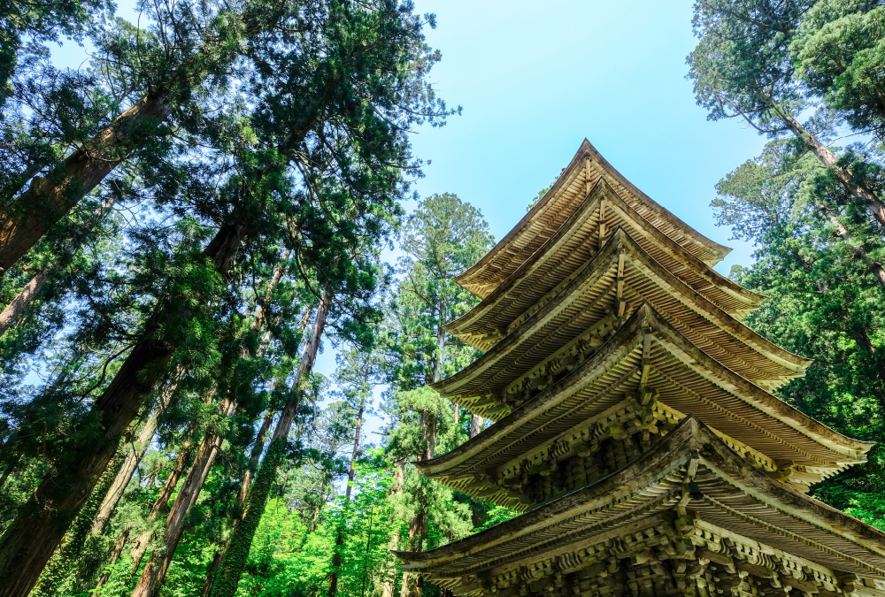出羽三山の表玄関とされ、東北地方では最古の塔といわれる国宝の塔。